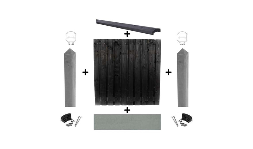 Startpakket zwart gespoten hout – antraciet gecoat beton schutting