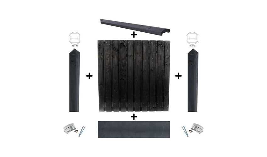 Startpakket zwart gespoten hout – antraciet ongecoat beton schutting