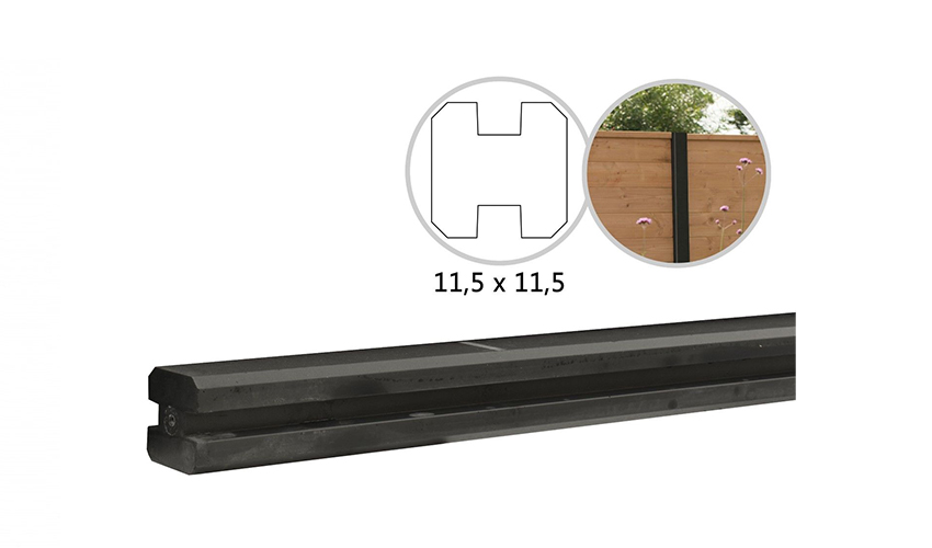 Beton tussenpaal met sleuf antraciet gecoat – 11,5 x 11,5 x 277 cm