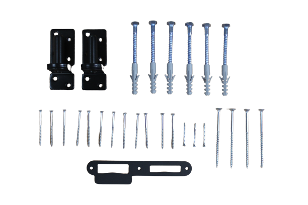 Inhoud set: 2x Kozijn hout, 1x Bovenregel kozijn., 4x schroeven voor bevestiging van het kozijn., 2x Plaatduim inclusief schroeven voor bevestiging, 6x Slagpluggen voor bevestiging van kozijn aan de muur of paal (kozijn is niet geschikt om los in de grond te staan), 1x Sluitplaat voor dag-nachtslot inclusief schroeven., 1x Aanslaglat.